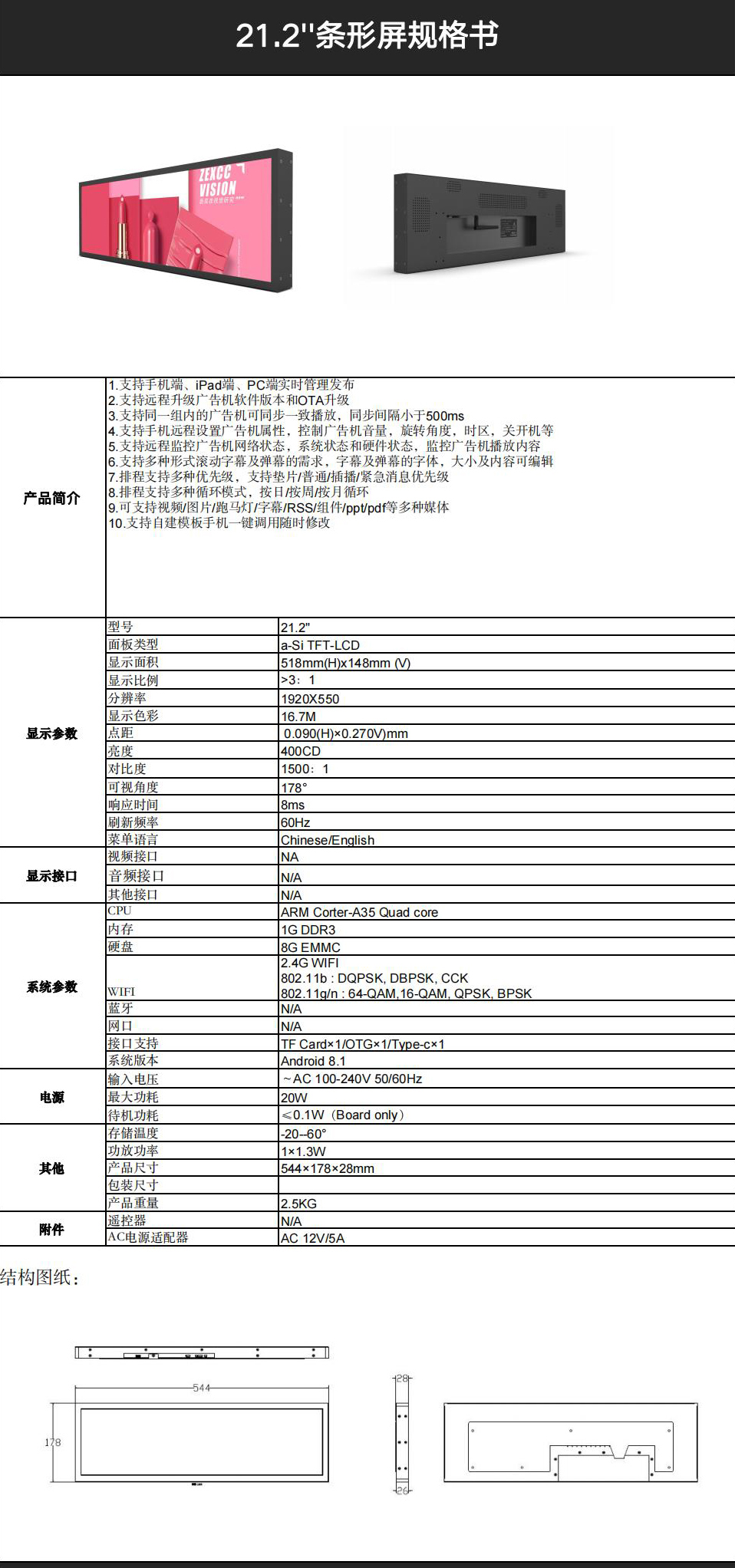 條形屏21.2‘’